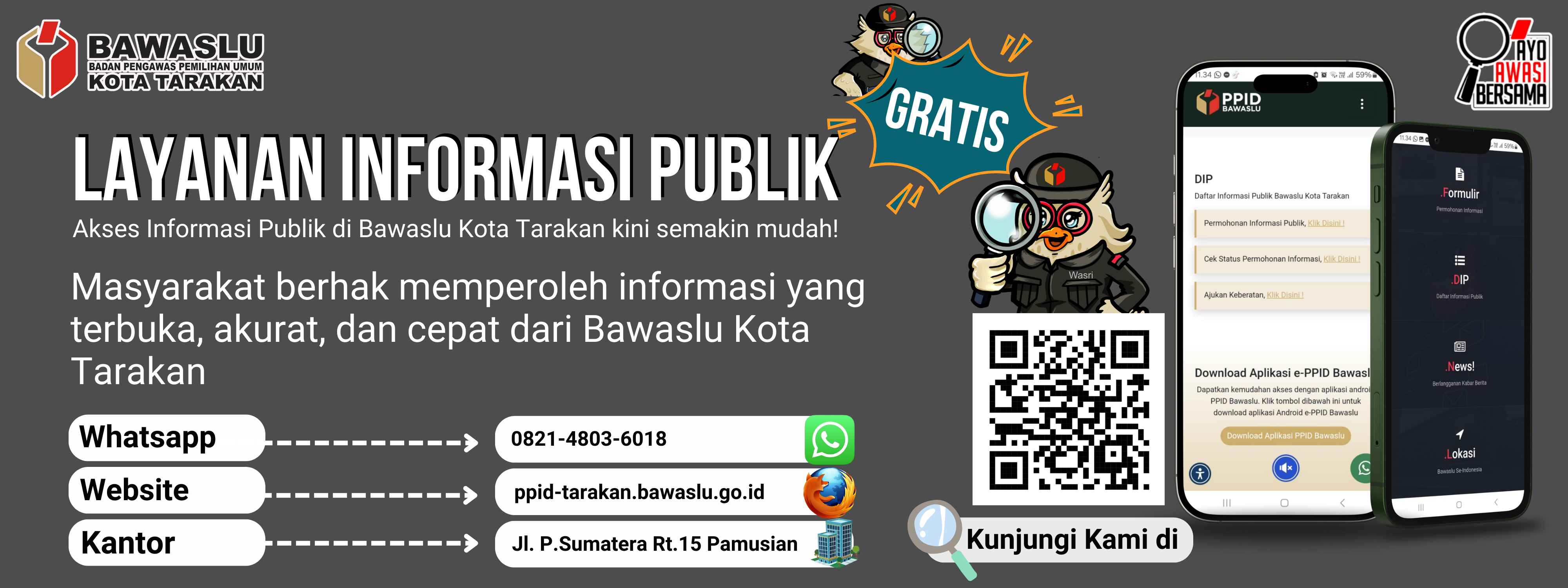 Pengumuman Pendaftaran Debat Pelajar Demokrasi Ke-4 Tahun 2025 Se-Kota Tarakan Lihat Selengkapnya Pengumuman Dicari, 319 Pengawas TPS, Ayo Daftarkan Dirimu Lihat Selengkapnya Pengumuman Contoh Pengumuman Lihat Selengkapnya Lapor Pelanggaran Pemilu Hasil Pengawasan Tahapan Pemilu 2024 Ajukan Permohonan Sengketa Proses Pemilu Bagaimana Cara Ikut Awasi Pemilu Lapor Hoaks Pemilu Apa Saja Yang Diawasi Pada Tahapan Pemilu Berita Bawaslu Tarakan Samakan Persepsi Status Mantan Terpidana dengan Lapas Tarakan humas Minggu, Februari 1, 2026 - 18:27 Bawaslu Tarakan Masuk Lapas, Amankan Data Pemilih Warga Binaan humas Sabtu, Januari 31, 2026 - 19:20 Data Akurat, Demokrasi Kuat: Bawaslu dan Disdukcapil Tarakan Perkuat Sinergitas Dengan Konsolidasi Demokrasi humas Kamis, Januari 29, 2026 - 18:36 Perkuat Kualitas Demokrasi, Bawaslu Tarakan Lakukan Konsolidasi ke KPU Tarakan humas Kamis, Januari 29, 2026 - 06:56 Perkuat Tata Kelola JDIH, Bawaslu Kota Tarakan Studi Banding ke BPK Kanwil Kaltara humas Rabu, Januari 7, 2026 - 08:51 https://sigaplapor.bawaslu.go.id/ https://ppid-tarakan.bawaslu.go.id https://sips.bawaslu.go.id/ https://google.com https://jdih.bawaslu.go.id/ Galeri Pengawasan Rapat Pleno PDPB Triwulan Ke-2 Uji Petik PDPB Triwullan Ke-2 Pengawasan Coklit Terbatas (Coktas) bersama KPU Pencarian Saran dan Pengaduan Saran dan pengaduan dengan untuk kemajuan Bawaslu Ajukan